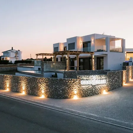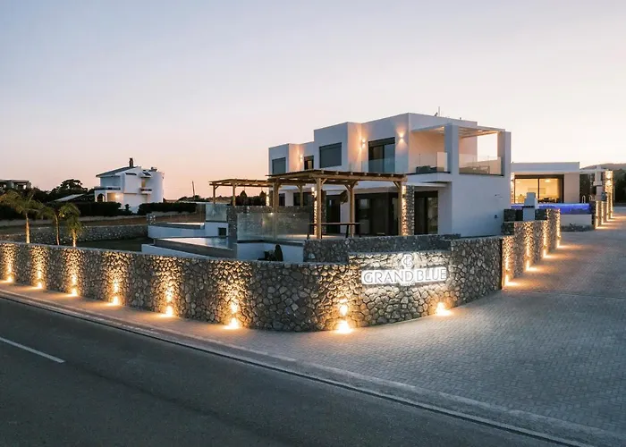Grand Blue Villas propose un écran plat avec satellite et un jardin pour les loisirs des clients. Il se trouve à 15 minutes en voiture de Church of St. Anastasia the Roman. Villa comprend un parking privé gratuit et une terrasse avec des vues sur la mer.